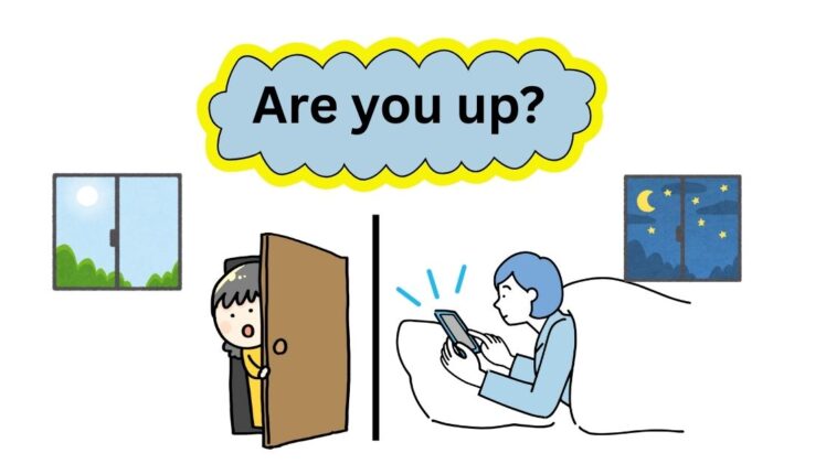 海外生活で朝よく登場する「もう起きてる?」や就寝時間に使う「まだ起きてる?」「まだ起きてたの?!」をネィティヴは"be up"を使ってシンプルに表現します。"Are you up yet?" "Are you still up" の使い方を実会話を再現してイラスト付きで紹介します。
